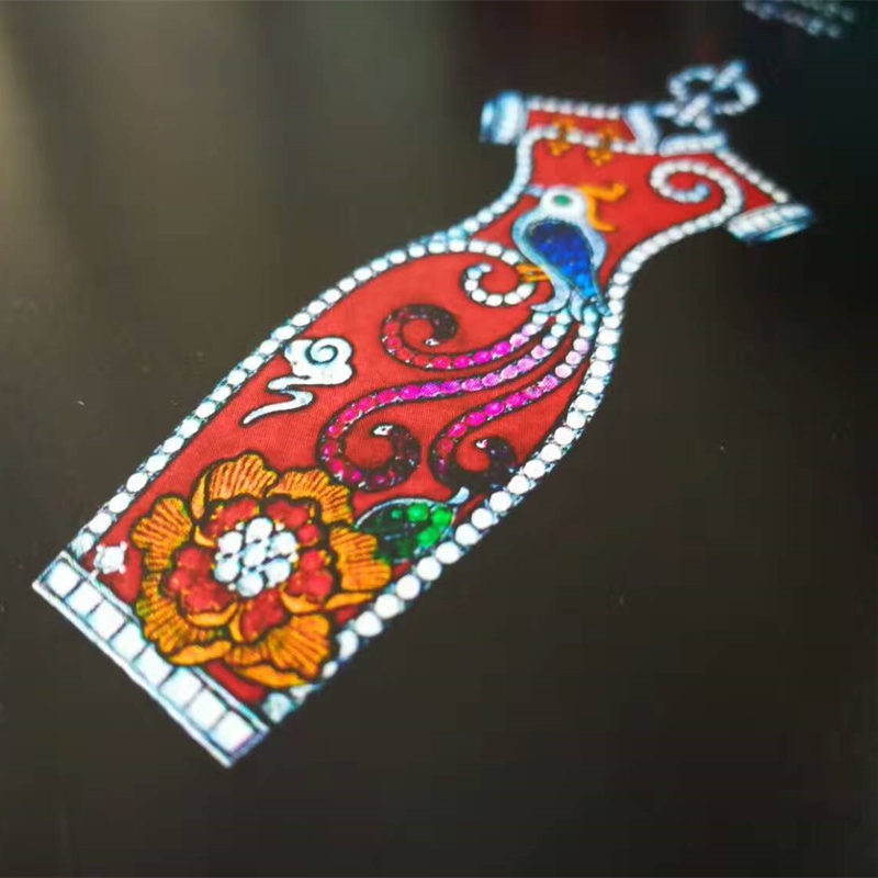 说明:18K黄金吊坠,灵感来源于中国旗袍。由钻石、红宝石、蓝宝石、祖母绿以及珐琅工艺镶嵌制作。